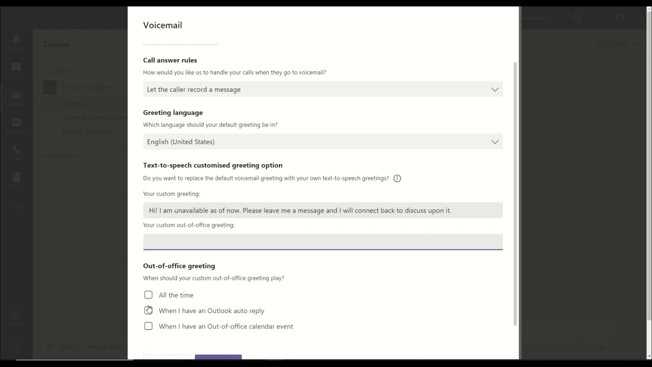 How To Set Up Customized Voicemail Greetings Message In Teams Youtube